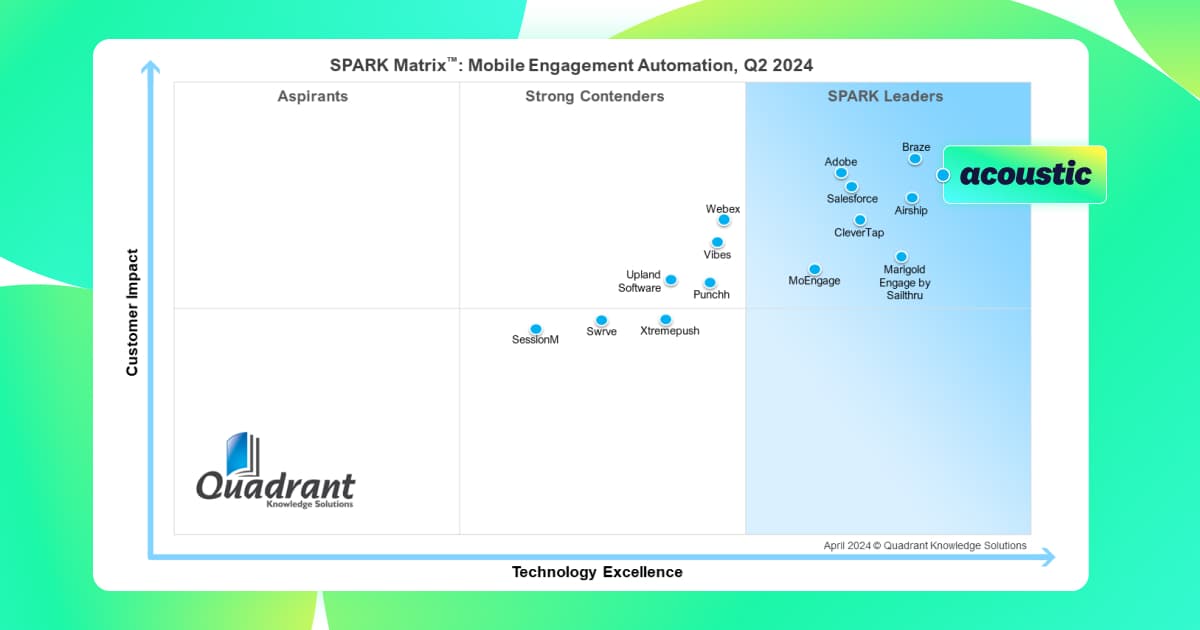 Acoustic Connect named a leader in Q2 2024 by Quadrant Knowledge Solutions: SPARK Matrix™ Mobile Engagement Automation